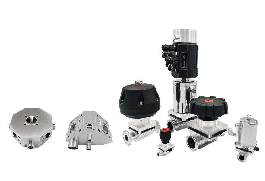 다이어프램 밸브는 유연한 다이어프램을 폐쇄 요소로 사용하여 밸브 본체의 내부 공간과 유체를 분리하는 특수 유형의 차단 밸브입니다. 다이어프램 밸브는 간단한 구조, 우수한 밀봉 성능 및 매체에 대한 높은 적응성으로 제약, 식품, 생명 공학, 화학 및 기타 산업에서 널리 사용됩니다. 유체는 오염을 방지하기 위해 밸브 스템, 밸브 커버 및 기타 구성 요소로부터 완전히 격리됩니다. 내부 캐비티는 매끄럽고 사각지대가 없어 청소 요구 사항이 높은 산업에 적합합니다. 다이어프램은 밸브 시트와 직접 접촉하여 우수한 폐쇄 효과를 얻습니다. 외부 누수 및 내부 오염을 효과적으로 방지합니다. 스위치는 수동, 공압 또는 전기 액추에이터로 제어되며 유지 관리가 쉽습니다. 밸브 본체 재질은 단조 S31603입니다. 다이어프램 재료(예: TFM EPDM)는 다양한 부식성 매체에 적합한 특수 합금 재료(예: 티타늄, 하스텔로이, 904L 등) 중에서 선택할 수 있습니다. 흐름 채널은 직선형 또는 다중 통과형으로 설계되어 유체 저항을 줄이고 재료 잔류물을 줄입니다.